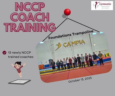 Congratulations, 15 coaches completed NCCP Foundations Trampoline training September 30,2025 at Campia Gymnastics. Thank You Stephen Nolan for facilitating this course.