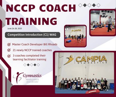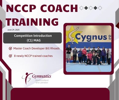 Congratulations, 20 new coaches completed NCCP Foundations Introduction and Artistic training May 31 & June 1, 2025 at Cygnus Gymnastics new location on Blackmarsh Road, St. John's, NL. Thank You Melissa Hood for facilitating this course.